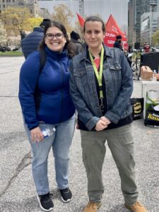 Our Kayla Zagwolski at Raise the Social Assistance Rates rally with Melinda Ferlisi of ISAC